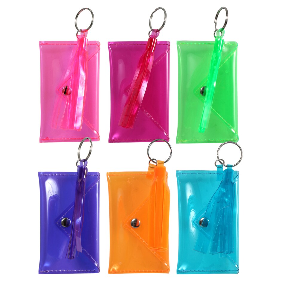 Neon coin purses with tassels and key rings 4x2 5 in.